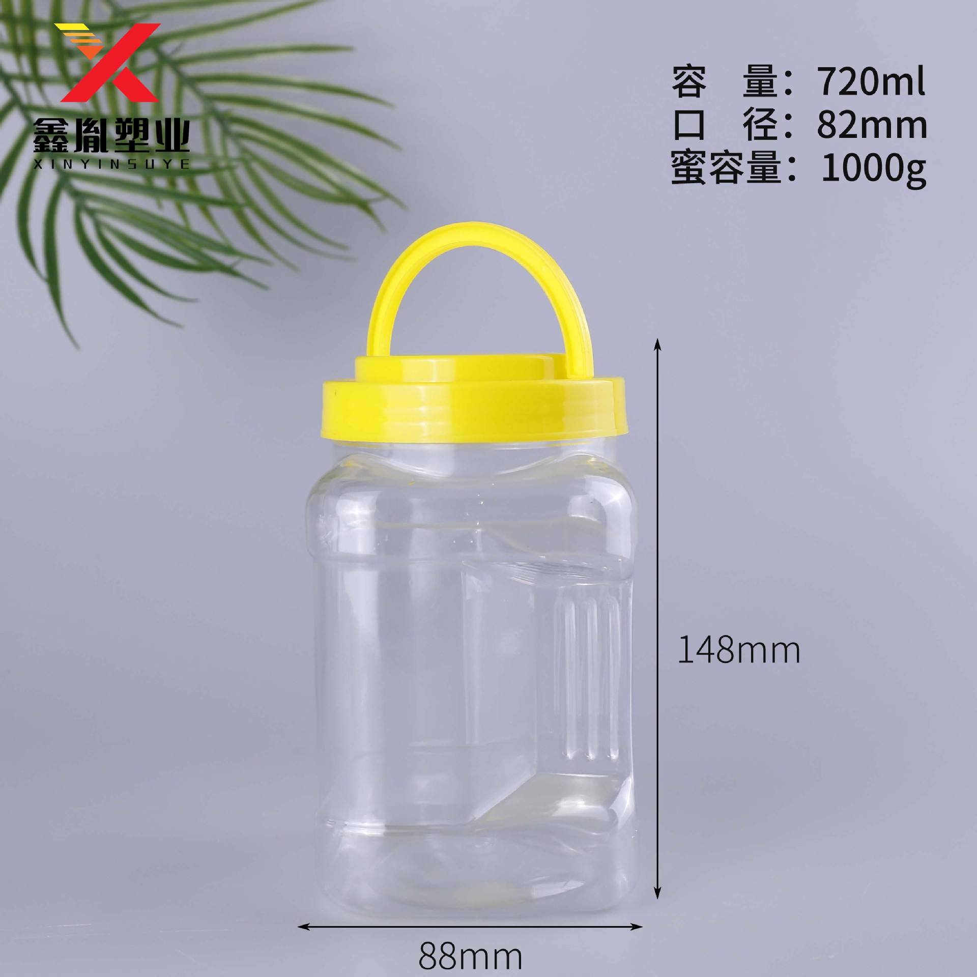1.0kg スクエアハニージャー 500 グラムリターンポートプラスチックハニーボトル PET 透明ピクルス包装ボトル密封されたスクエアボトル