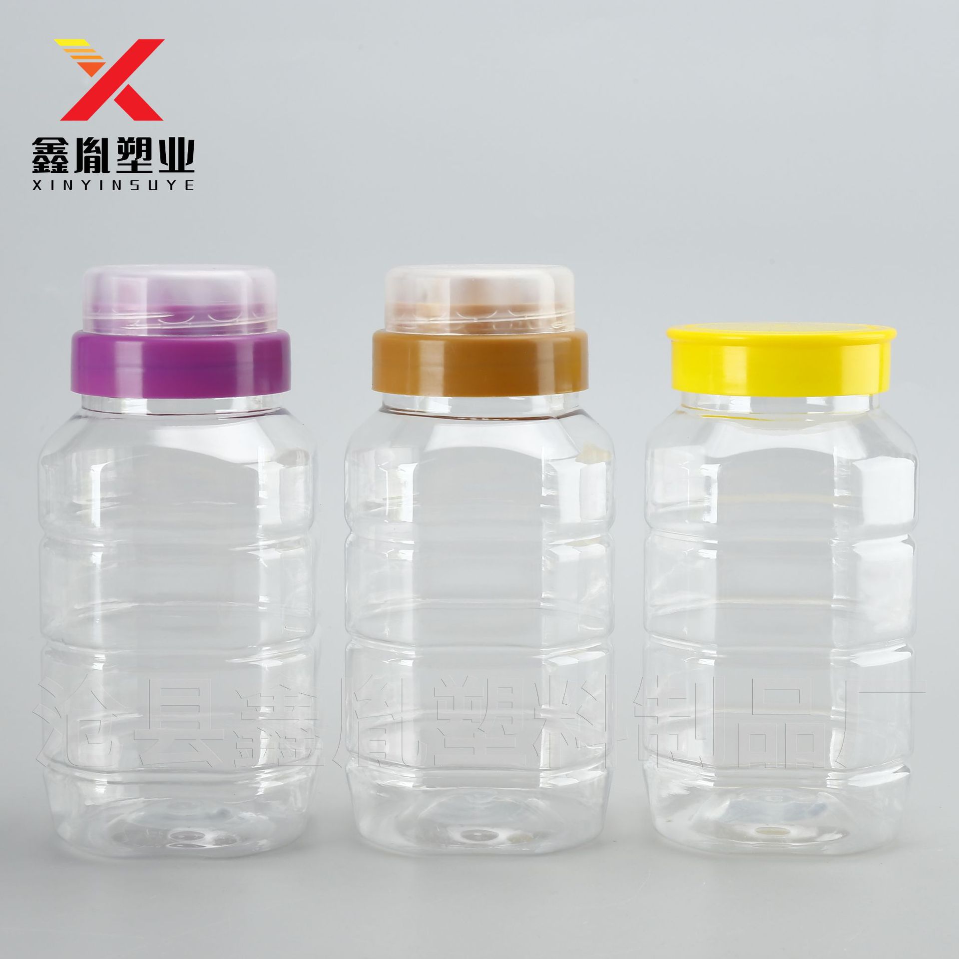 1.0kg スクエアハニージャー 500 グラムリターンポートプラスチックハニーボトル PET 透明ピクルス包装ボトル密封されたスクエアボトル
