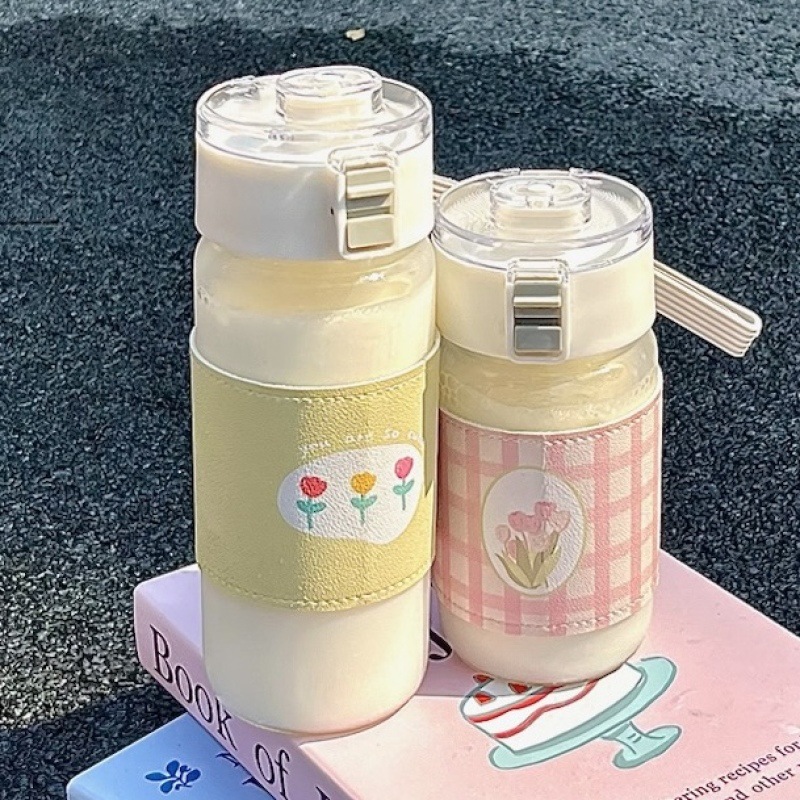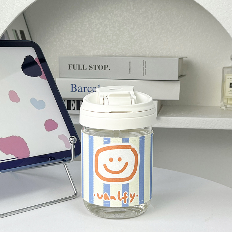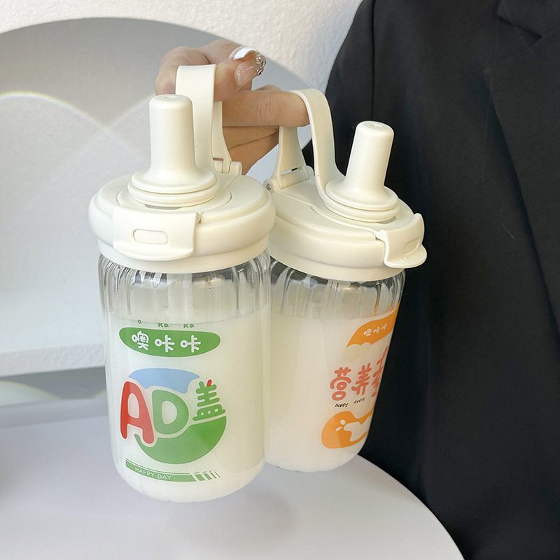 Ins風双飲グラス女子カップ高颜値ad蓋双飲カップ耐高温高ホウ素シリコンすぐにストローカップ