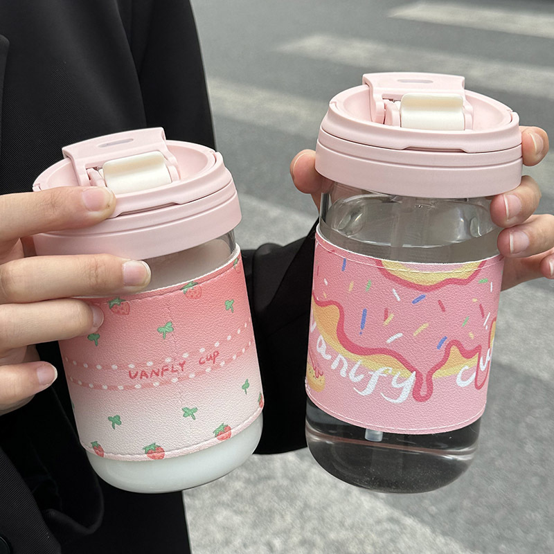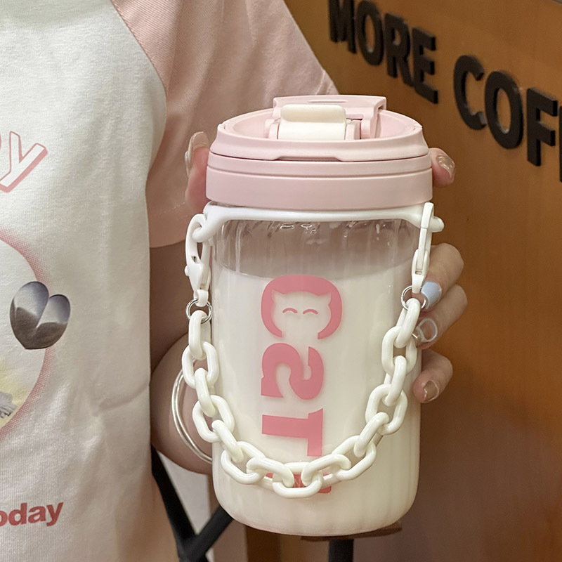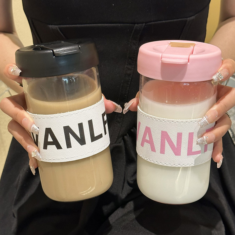 カップ付き蓋付きグラス高ホウ素シリコン耐高温カップ女性かわいい女の子の新しいins風帯ストロー