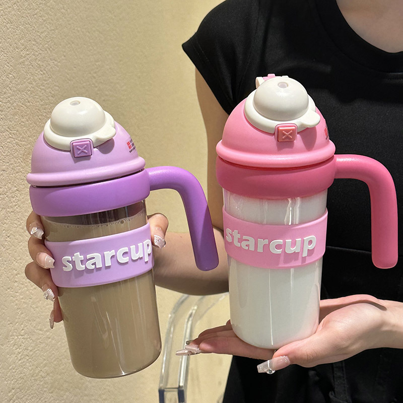 カップ新型大容量携帯プラスチックカップハンドルストロー女子学生高颜値オフィスカップ高級