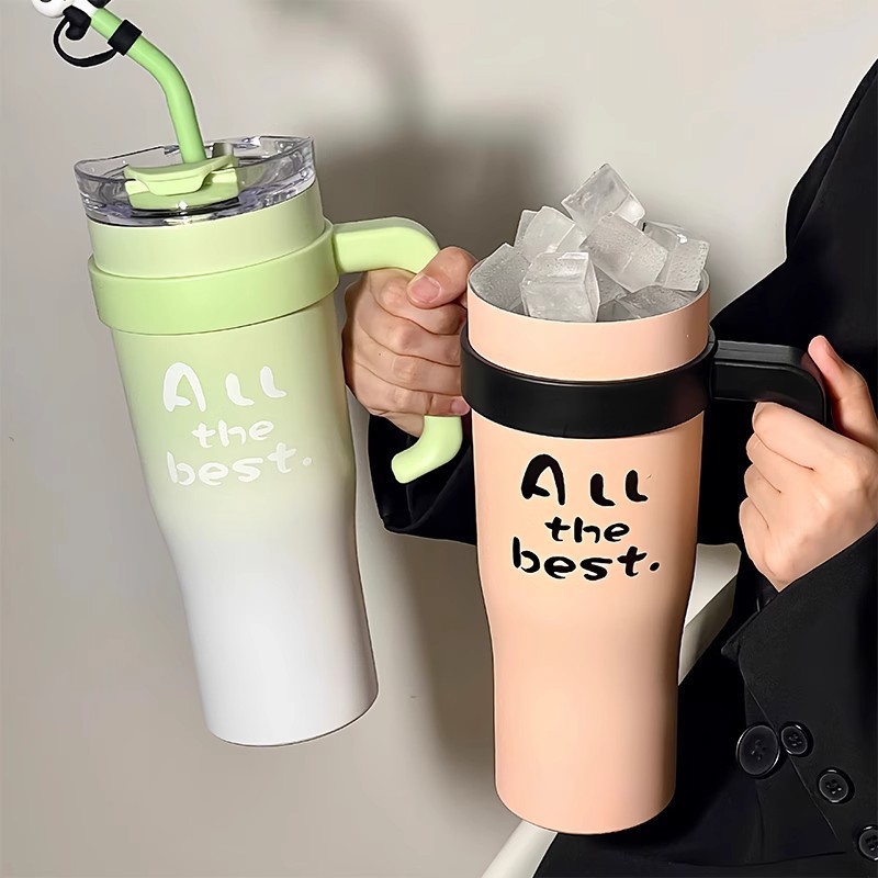 新品ビッグマックカップ保冷保温カップins風保温カップストロー付きアルファベットプリント食品級ステンレス