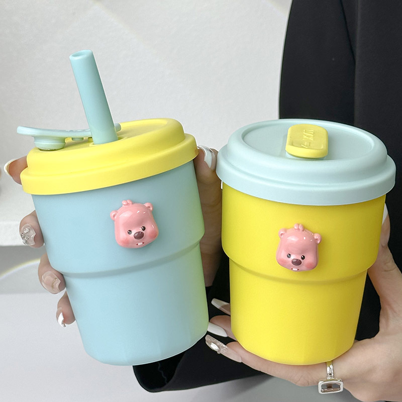 ポータブルグラスコップ新型携帯ストローカップ保温カッププラスチックカップかわいいシールコップ大容量