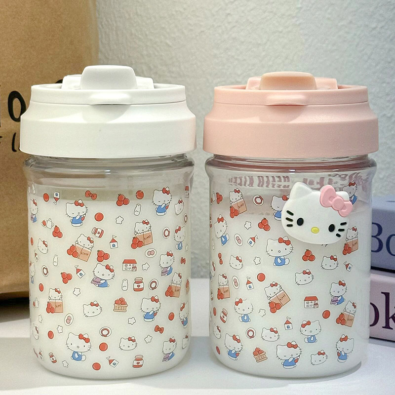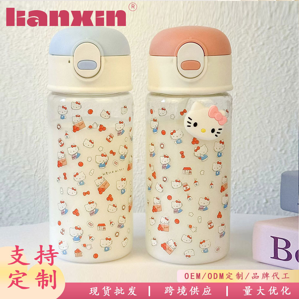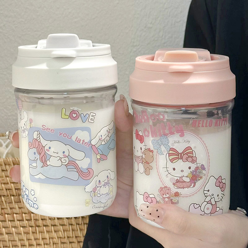 カップ女子ins新型kt猫かわいいシール女子ストローカップ携帯ダブルドリンクカップ高温プラスチックカップ