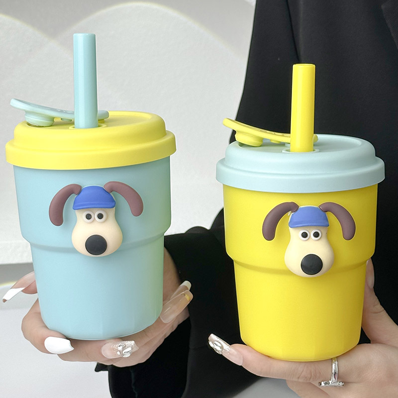 カップ女子玉桂犬タイプinsかわいいシール女子ストローカップ携帯大容量直飲プラスチックカップ