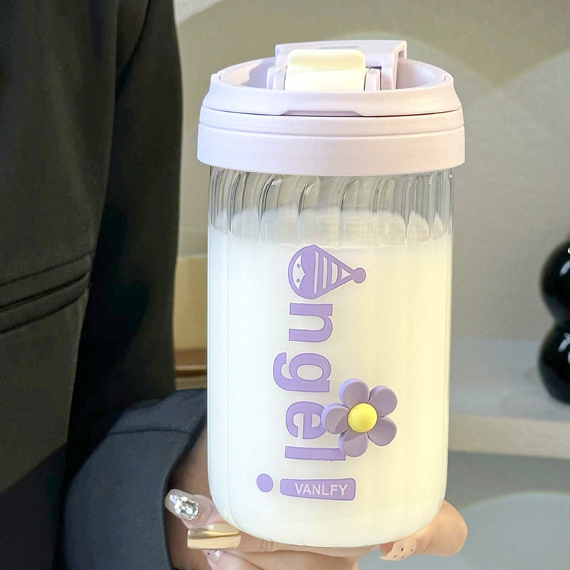 2024新型コップ女子夏高颜値ストローカップ耐高温ガラスコップ携帯デイジーシール