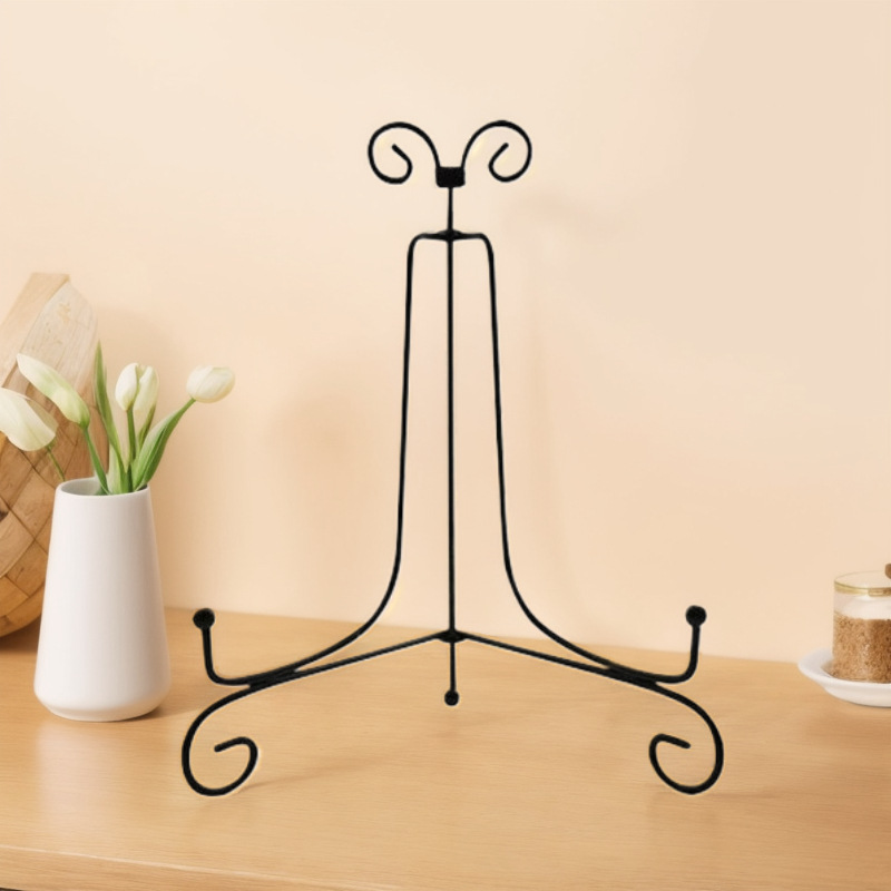 優雅な三角形の金属の支柱の鉄芸の磁器の皿は展示棚の家庭の装飾品の置物のメーカーを収納して卸売りに直接供給します。