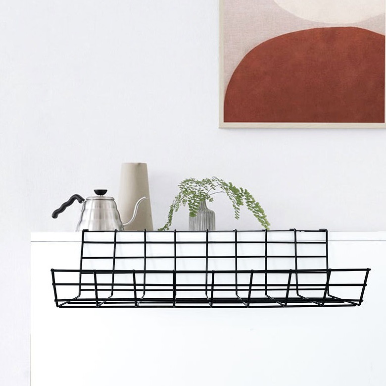 シンプルなテーブルの下の置物の理線の寮の上に収納する神器の電線の収納棚を敷きます。