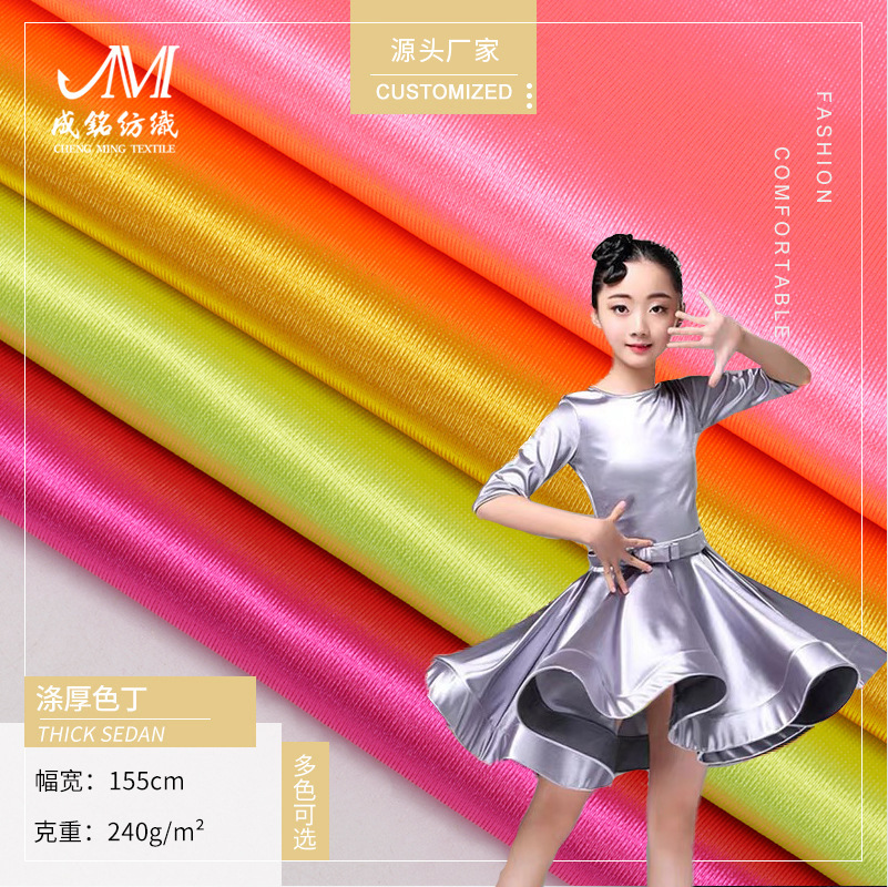 240グラムポリエステル色丁舞台服生地弾力フラッシュ布厚色丁サテンポリエステルダンス舞台生地