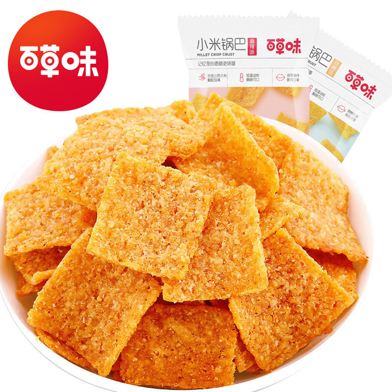 百草味小米鍋巴80g箱規30包麻辣味/バーベキュー味カジュアルスナック小米鍋巴