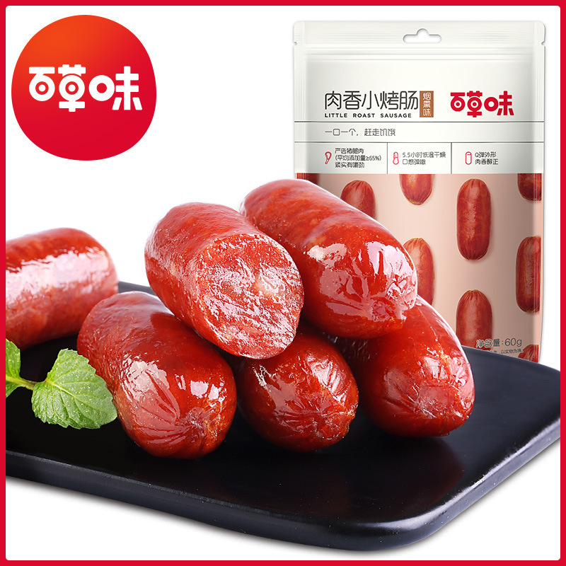 百草味 肉風味小焼きソーセージ 燻製味 60g 箱入り56個入り 豚肉類調理済みソーセージ すぐに食べられるスナック 豚肉