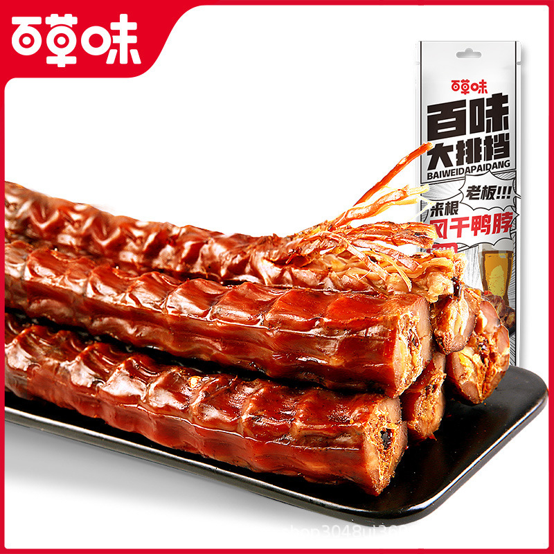 百草味風乾鴨首60g箱規80本の香辛料手がアヒルの首を裂くアヒルの商品ネット赤ハロゲン味肉類の間食