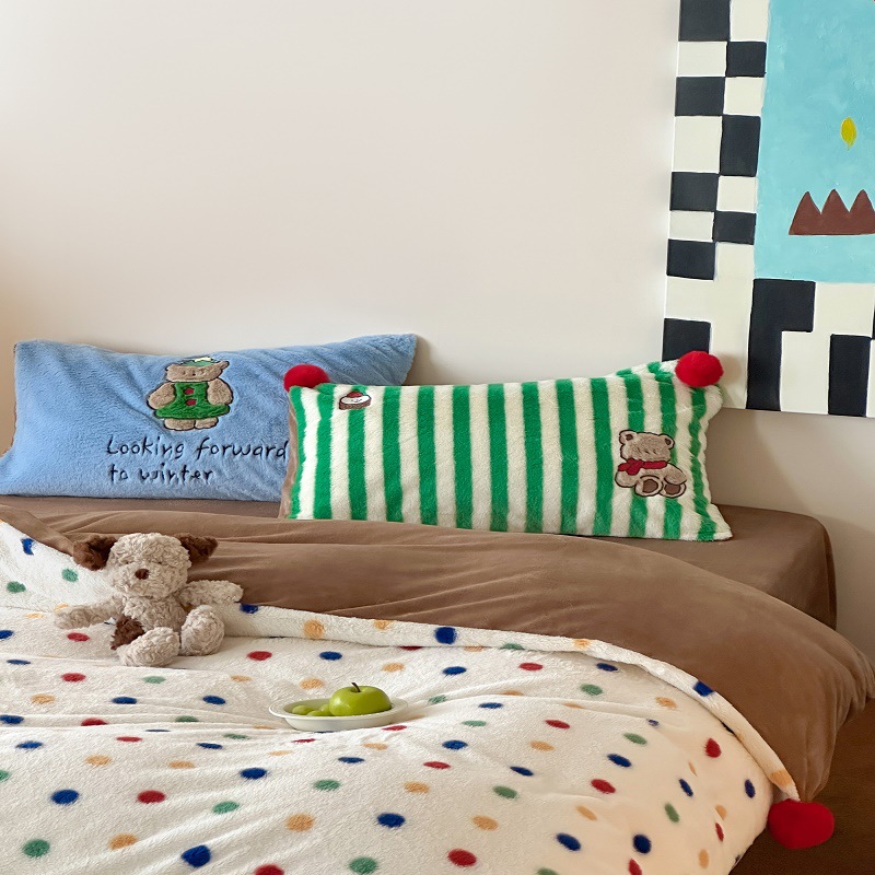 Ins風A版兎兎絨毛B版牛乳絨毛アニメ刺繍保温厚手寝具布団シーツベッド笠