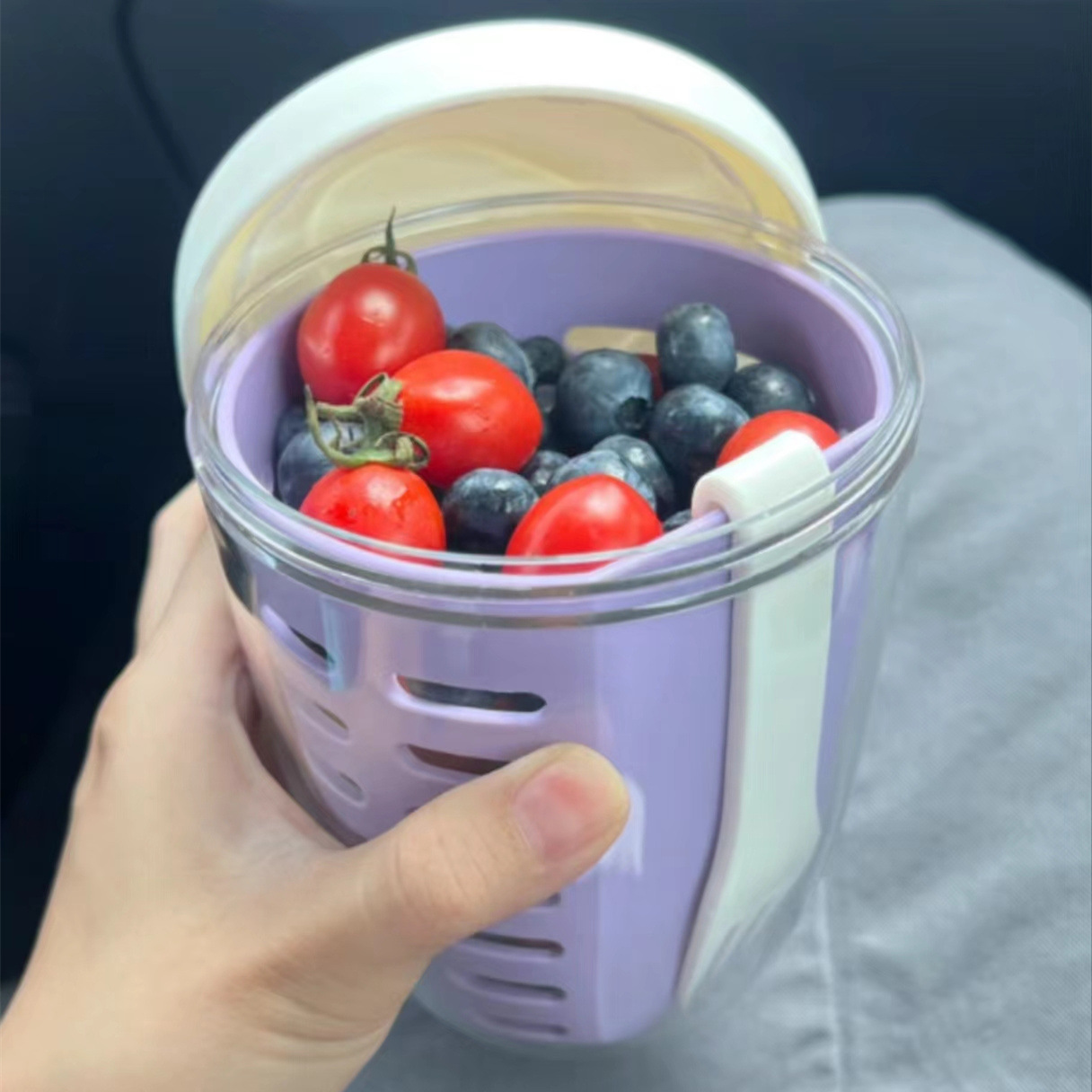 インターネットセレブフルーツカップサラダカップフォーク付きフルーツ二層排水缶排水可能ポータブル屋外オフィスワーカーガール