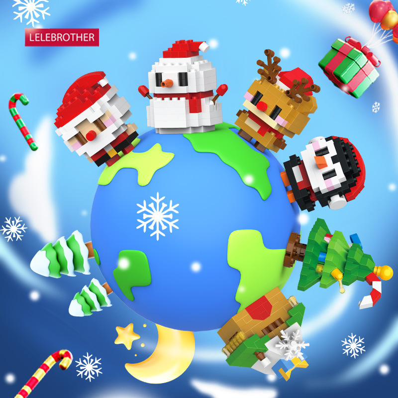 楽楽兄弟w1701漫画雪だるまクリスマス三合一積み木子供男の子合わせおもちゃモデルプレゼント
