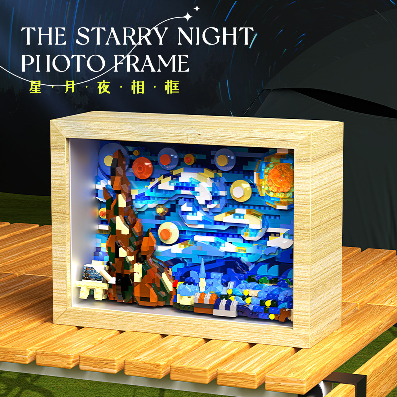 予高3120星月夜フォトフレームランプ付き創意子供益智組立卸売積み木玩具プレゼントクロスボーダー