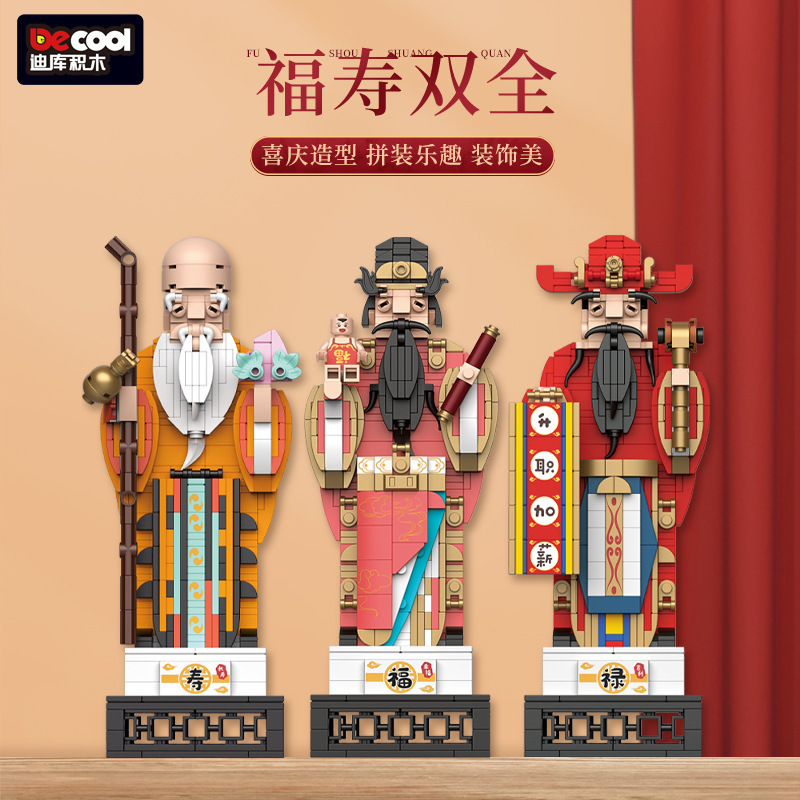 迪庫69006新春シリーズ虎虎生威福禄寿置物公仔新年プレゼント子供積み木玩具