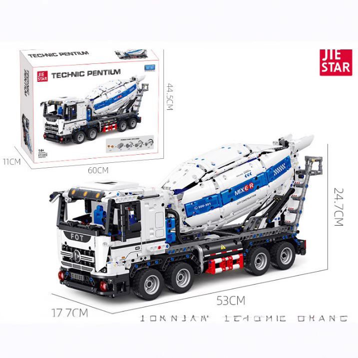 傑星11012コンクリートミキサー車子供積み木玩具2.4四チャンネルAPPリモコン少年潮遊礼