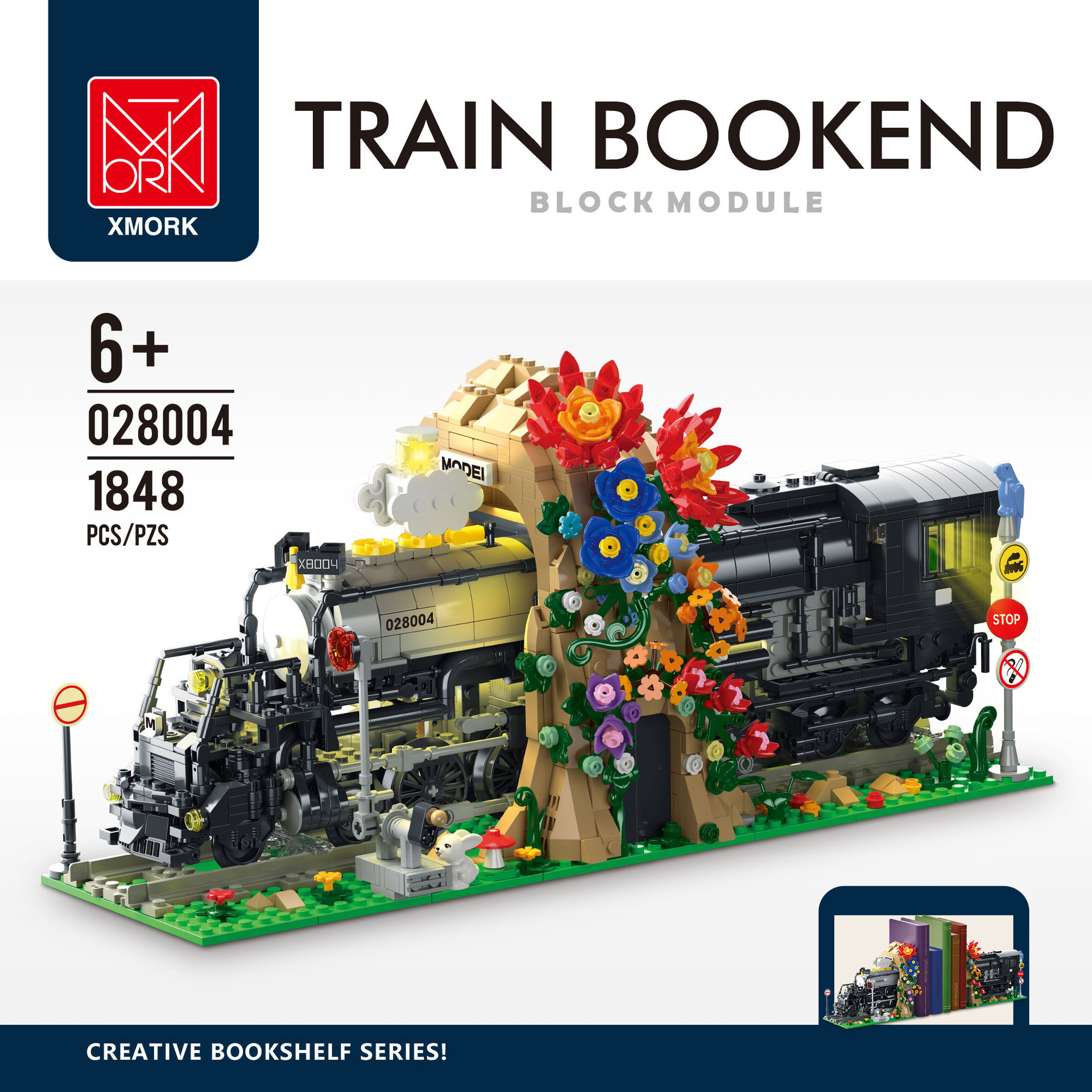 Moke 028004-05 レトロスチームパンク列車組み立てビルディングブロック子供のおもちゃの列車モデルブックエンドギフト