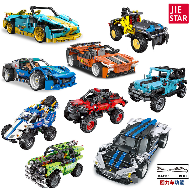 傑星58038-137回力スポーツカーのレーシングオフロード車は小さな粒子機構を組み合わせてプレゼントを訓練して積み木で遊ぶ