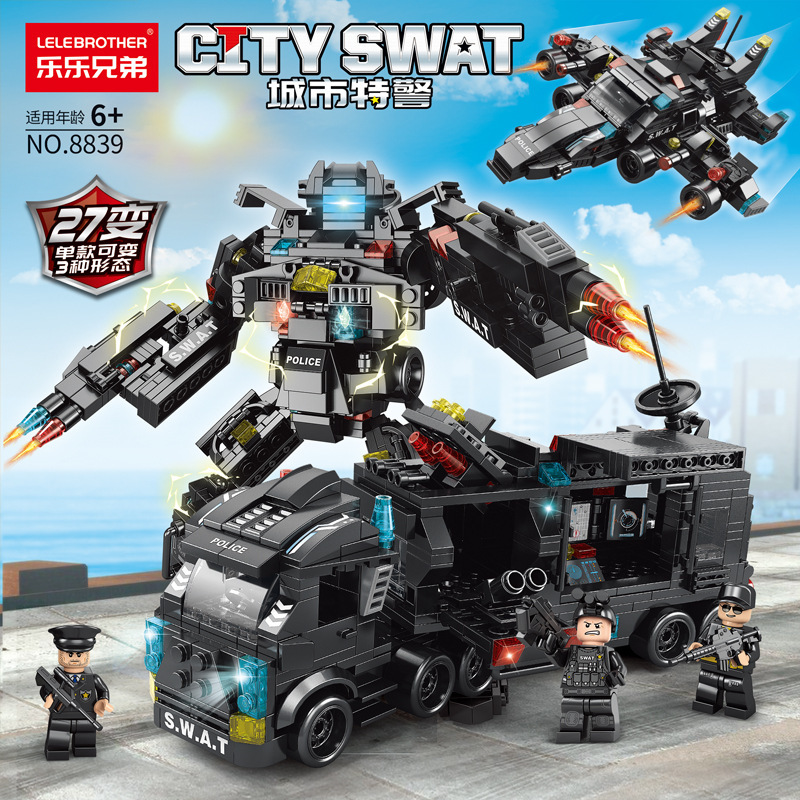 楽楽兄弟8839都市特警黒警27は袋の小さい粒子を変えて積み木のおもちゃの男の子のプレゼントを詰めます。