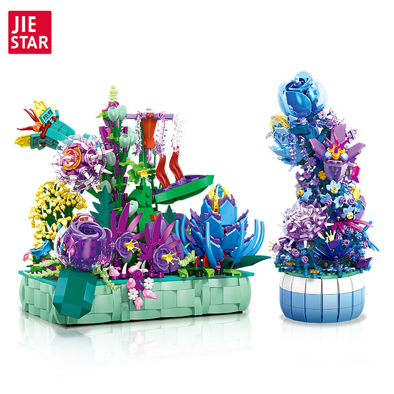 傑星9038-39花束傑星はDIY積み木の花のおもちゃのデスクトップの置物を組み立ててシミュレーションします。