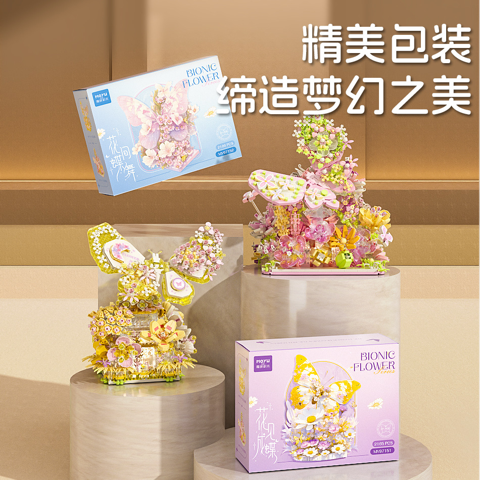 予高2343-2348昆虫花言叶盆栽ダストカバー付き子供女の子诘め合わせ组み立てブロックおもちゃギフト