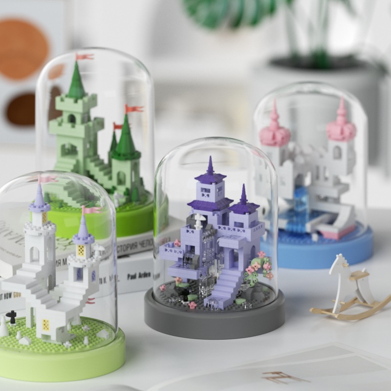 れんがも2190-2191水晶球城街景オルゴールの女の子の子供たちが積み木のおもちゃのプレゼントを組んでいる