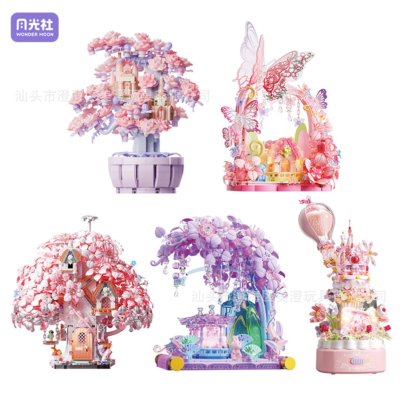 月光協会 802805-8 桜の木女の子女の子組み立てビルディングブロックおもちゃギフトモデル装飾品オルゴール