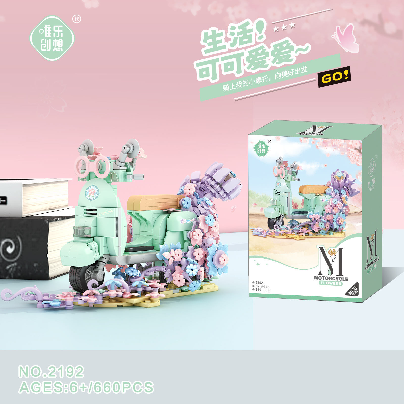 唯楽2192-2193オートバイの積み木の子供たちは、積み木のおもちゃを組み立てて子供たちのプレゼントを飾る
