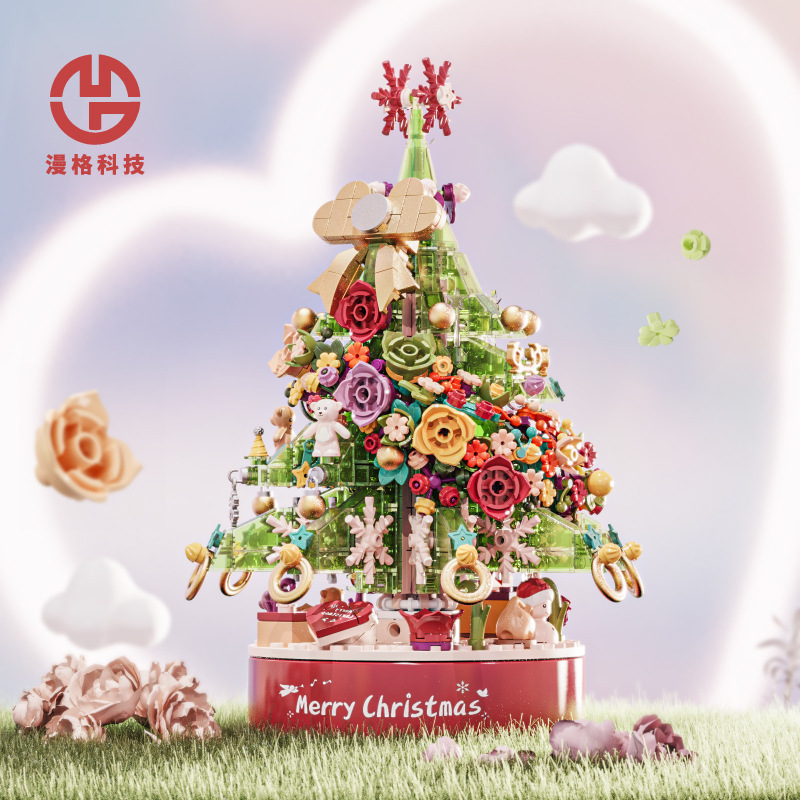 漫格9188-89クリスマスツリーのオルゴールの置物の子供の女の子の中国の積み木のおもちゃの組み合わせの贈り物の卸売り