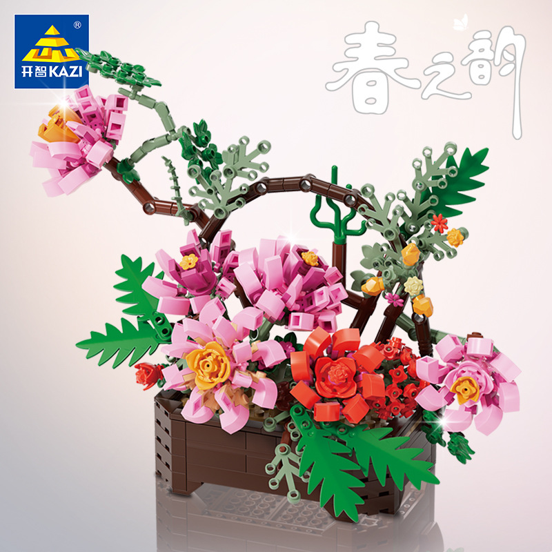 開智81116-17花言葉シリーズ新年花置物模型をつづり合わせて子供中国積み木玩具プレゼントを組み立てる