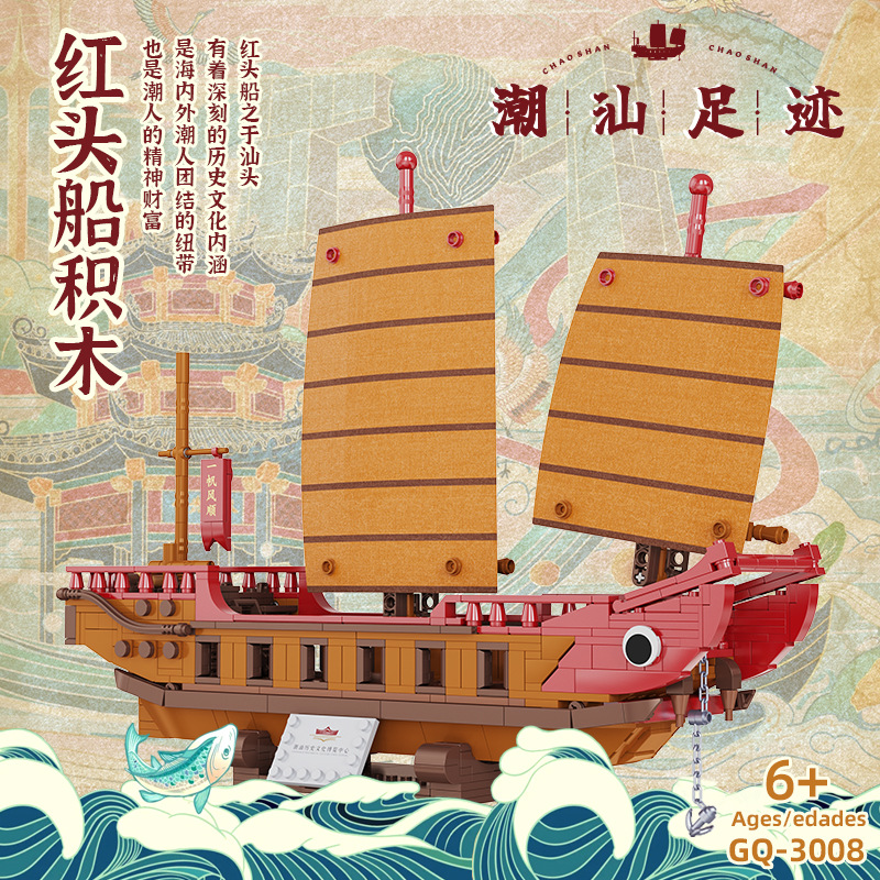 高崎3008潮汕文創紅頭船積み木組立玩具記念品子供知育プレゼント卸売り