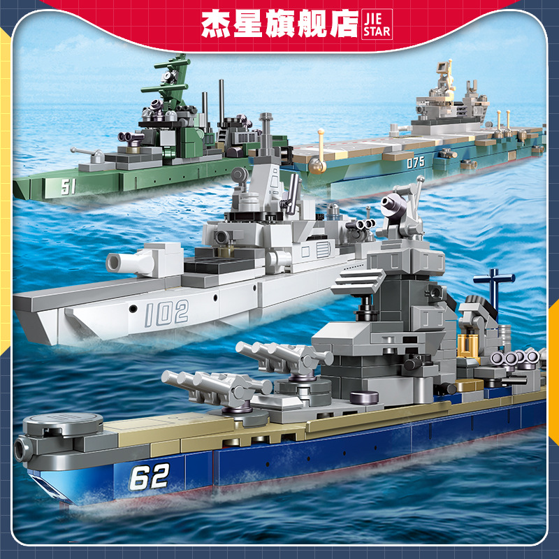 杰星58043-46驱逐舰中国积木玩具摆件模型儿童男孩拼组装礼品批发