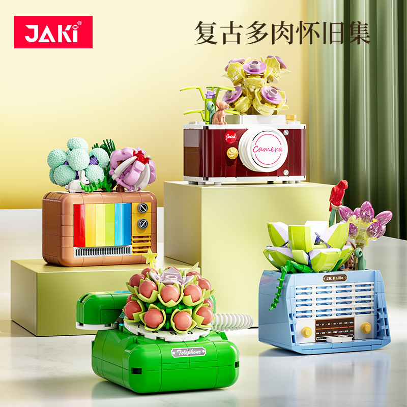 Jiaqi JK2715-18 レトロ多肉植物シリーズ中国ビルディングブロックおもちゃ装飾モデル子供の組み立てギフト