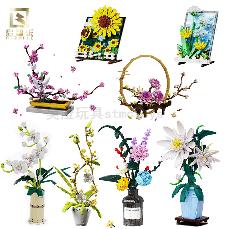 啓智楽92000-39ひまわり装飾画立体蘭置物永生積み木花玩具プレゼント代発