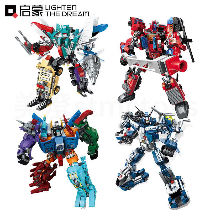 啓蒙 3105 核分裂シックスインワン変形ロボット少年組立ビルディングブロックおもちゃ卸売