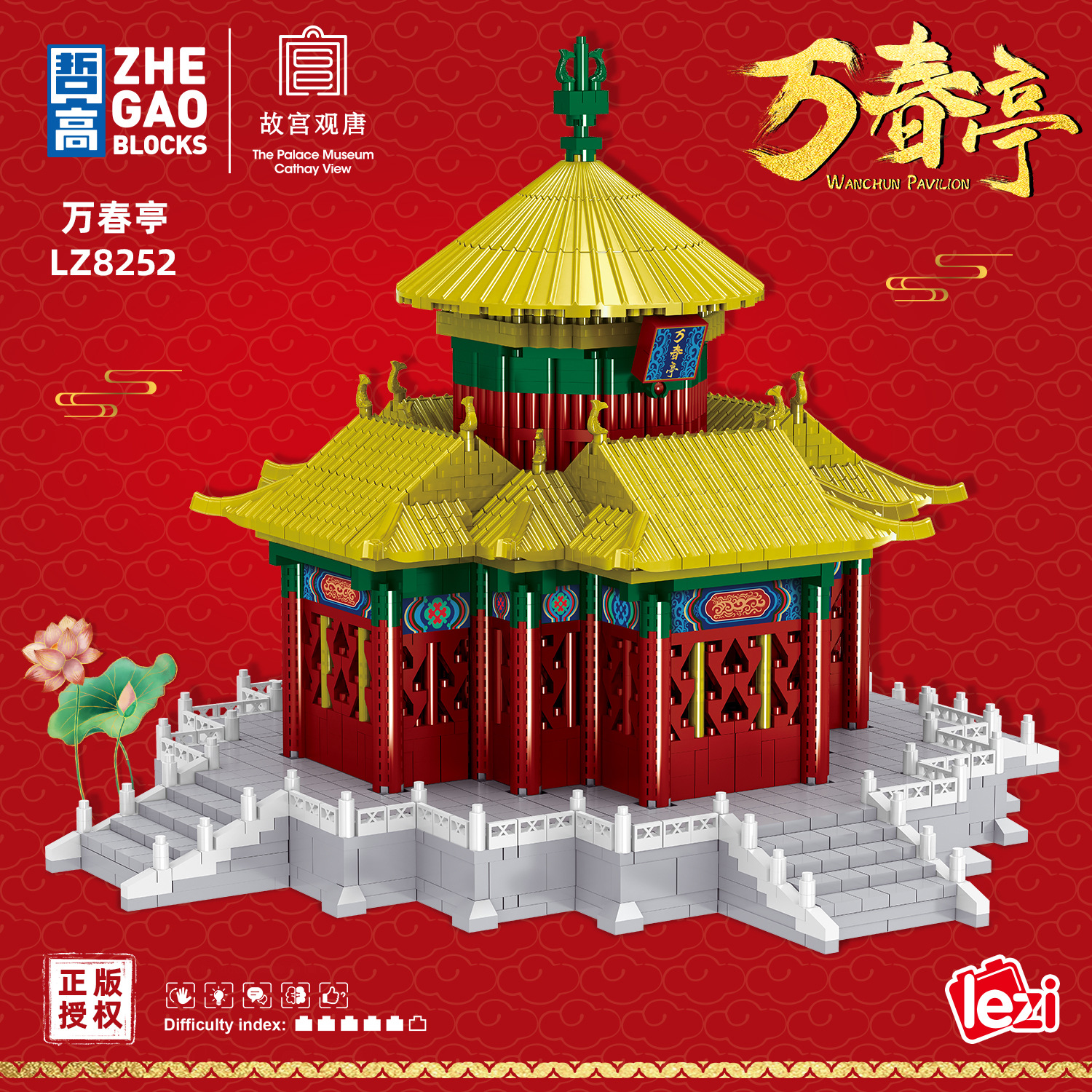 正版授権故宮シリーズ積み木楽子8252万春亭古建築ミニダイヤモンド粒子宮廷風つづり