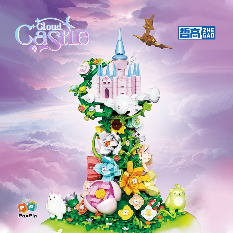 哲高ミニ粒子643001雲の中で城の女の子が積み木のおもちゃの模型を組んでクロスボーダーの置物を作ります。
