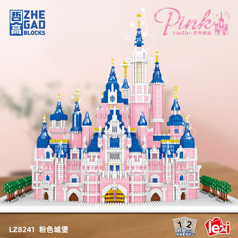哲高楽子lz 8241マイクロダイヤモンド小粒ピンク城模型知育解凍積み木玩具