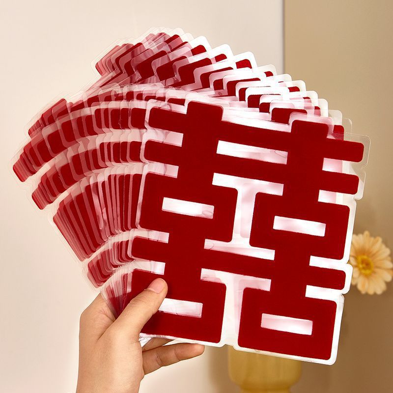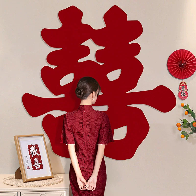 特大ハッピーワードステッカー、結婚式の特別なレイアウト、囍の文字、結婚式の部屋の装飾、窓、ドア、壁のステッカー、女性のためのウェディング用品