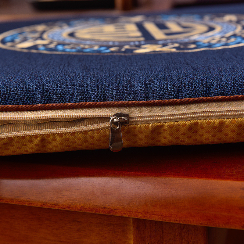 新しい中国風の刺繍入りダイニングチェアクッション綿とリネンの厚みのあるクッション無垢材の椅子クッション滑り止め椅子シートクッションストラップ付き