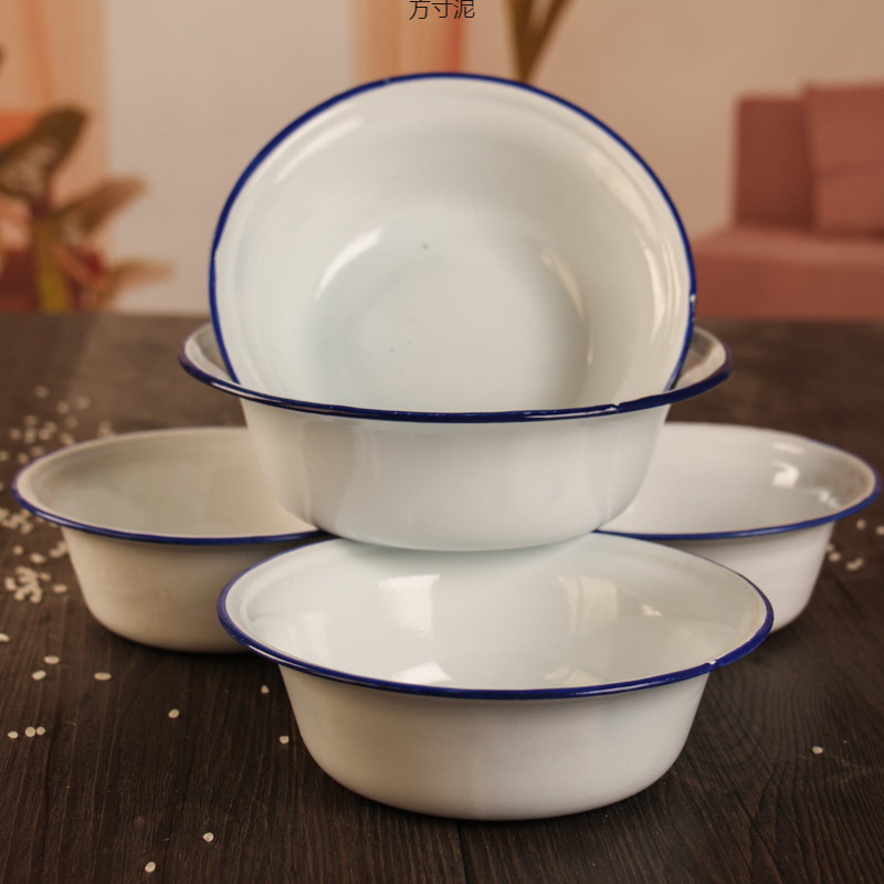 厚みのある白い懐かしい80年代の琺瑯ボウル、昔ながらのスープボウル、洋鉄ボウル、レトロな昔ながらの皿、ライスボウル、ラードボウル