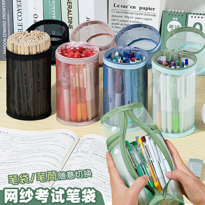 メッシュペンホルダーとペンバッグ垂直透明高価値シンプルな文具試験大容量多機能学生収納