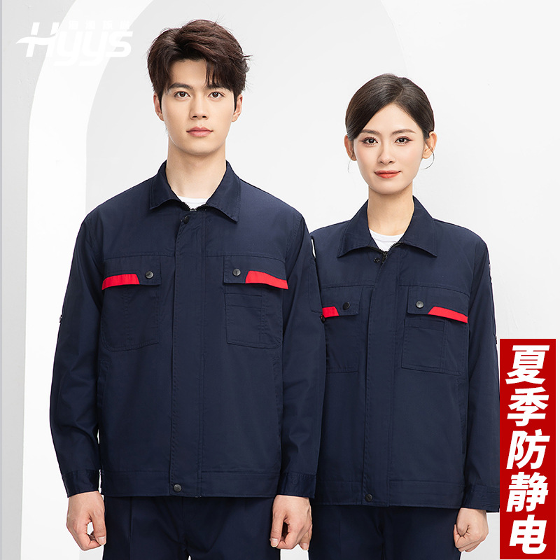 静電気防止作業服セットカスタム男性夏長袖薄いガソリンスタンド電子化工場輸送労働保険服