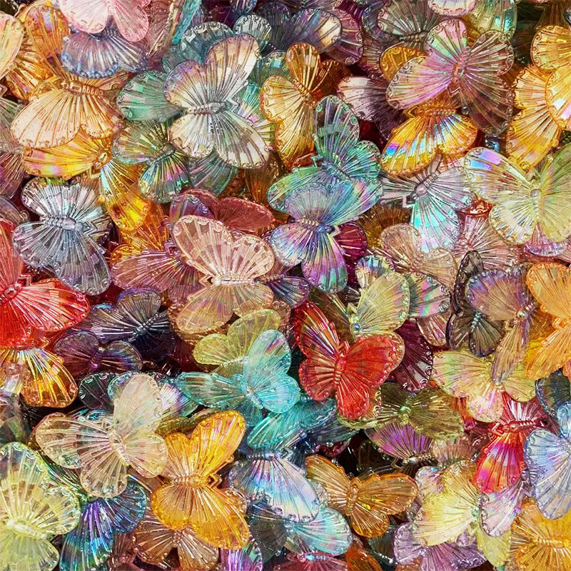 ネット赤同金アクリル百合メッキ透明蝶diy吊り穴ビーズ材料新商品携帯ケース装飾