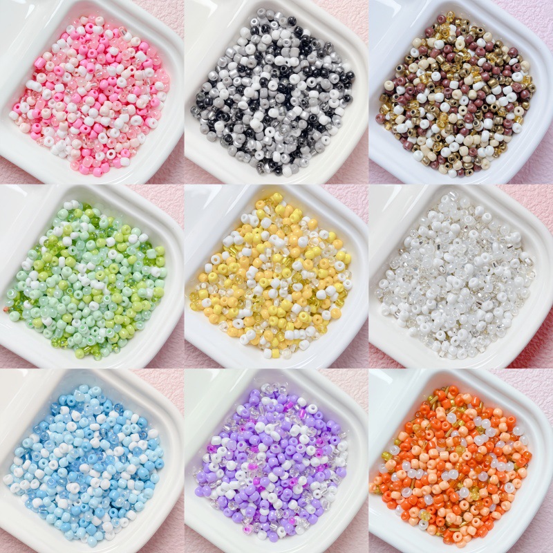 明るい系限定混色ガラス米珠diy手作りビーズブレスレットネックレス指輪散珠材料部品