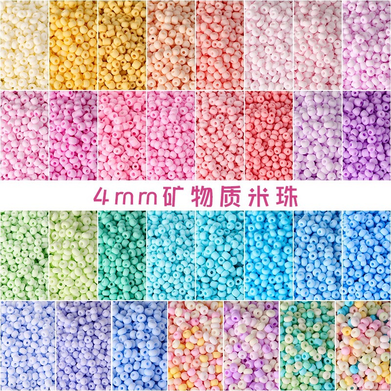 超優4mmクリーム系実色幻彩ガラス米珠手作りdiyビーズブレスレットネックレスアクセサリー材料