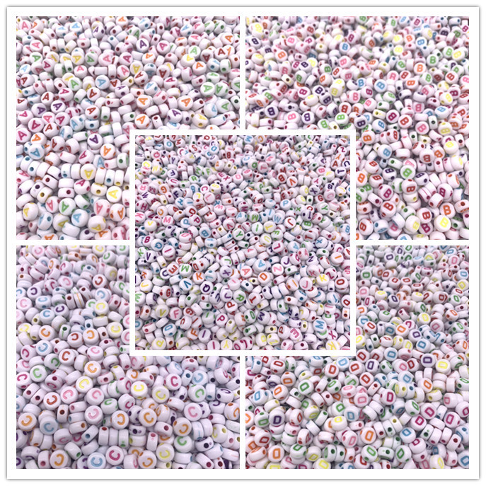 100個/包アクリル平丸字母珠4*7白地彩字26個の単色文字diyアクセサリー部品