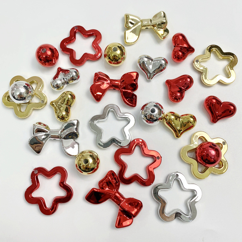 Uvメッキ金銀紅16mm円珠屁桃愛透かし五角星蝶ネクタイdiy携帯電話チェーン材料部品